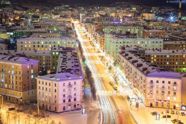 Murmansk is the largest city beyond the Arctic Circle, the city located on the picture square rocky eastern coast of the Kola Bay of the Barents Sea.